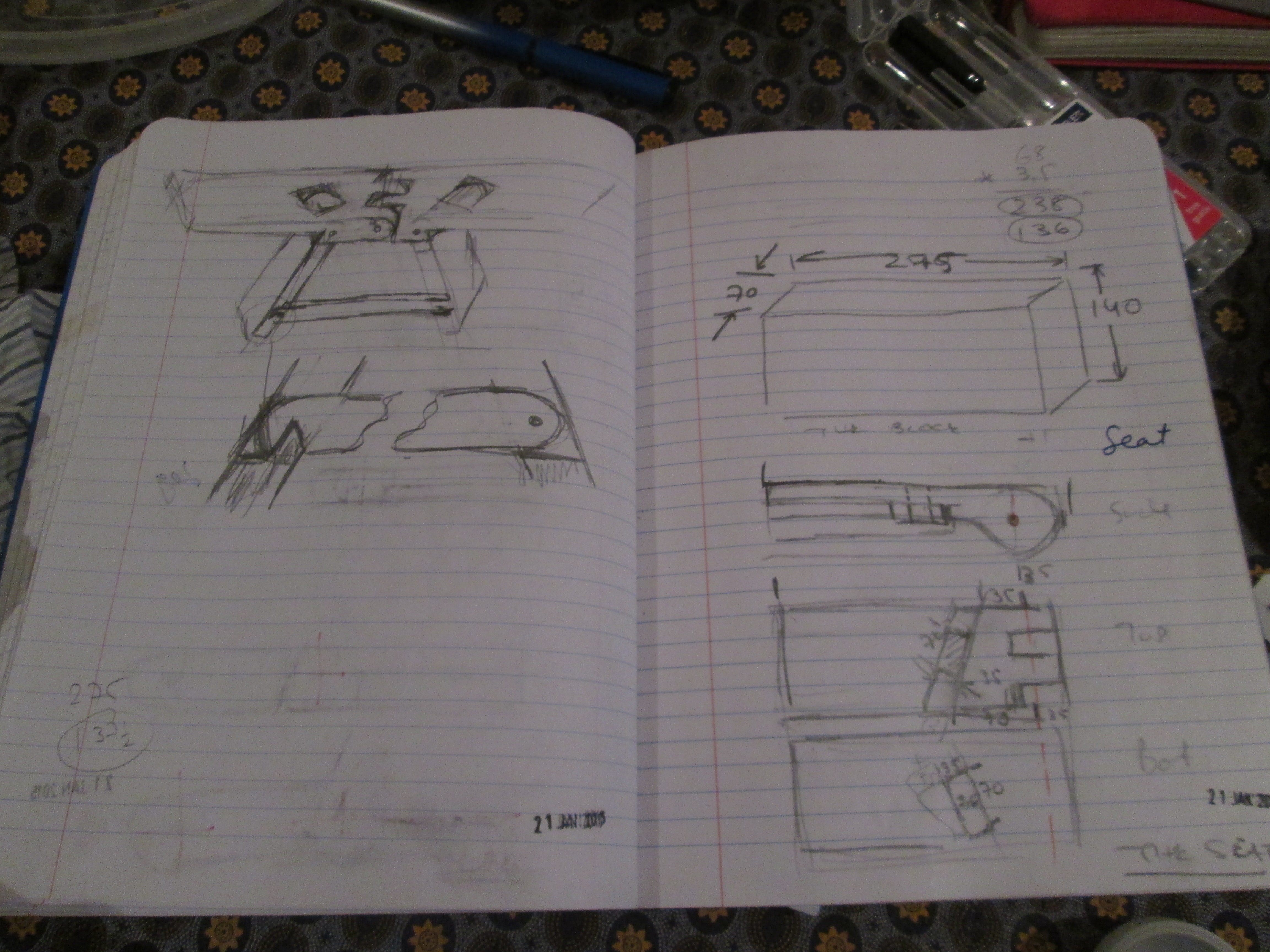 I clear my mind and make a quiet space for the last stage of my design process. I use rough sketches to think my way through and develop ideas and design, I consider how and with what materials the final product will be constructed, I try not to let this limit my creativity, usually there are many elements of balance and compromise. Once I am happy with the concept I make an appealing drawing. This drawing can and often does change but it allows me to put it to rest until, the next phase which will be layouts or re-drawing.
