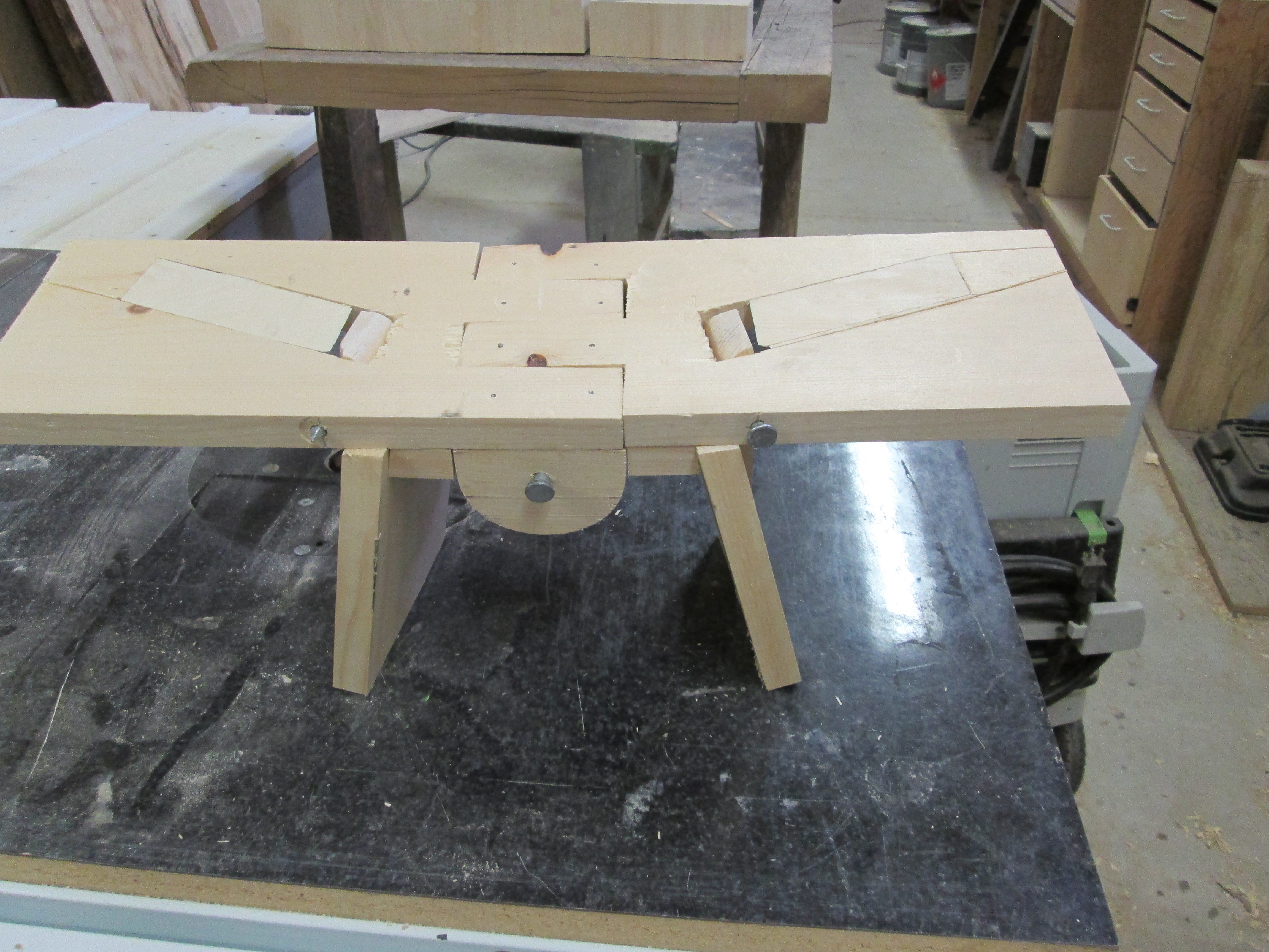 I made a series of ten in SA Pine Shutter Ply (the original was in a fir timber, patinad and soft edged by time and use) some were given as gifts, the rest sold and one I brought with me to Canada. At a sitting at Shambhala Toronto it generated interest and I was commissioned to make another two, this set me on a course of events that led to the meeting of a group of Meditative Carpenters. In particular James Z of Innovations Designs how gave me some suggestions on how to improve the design.